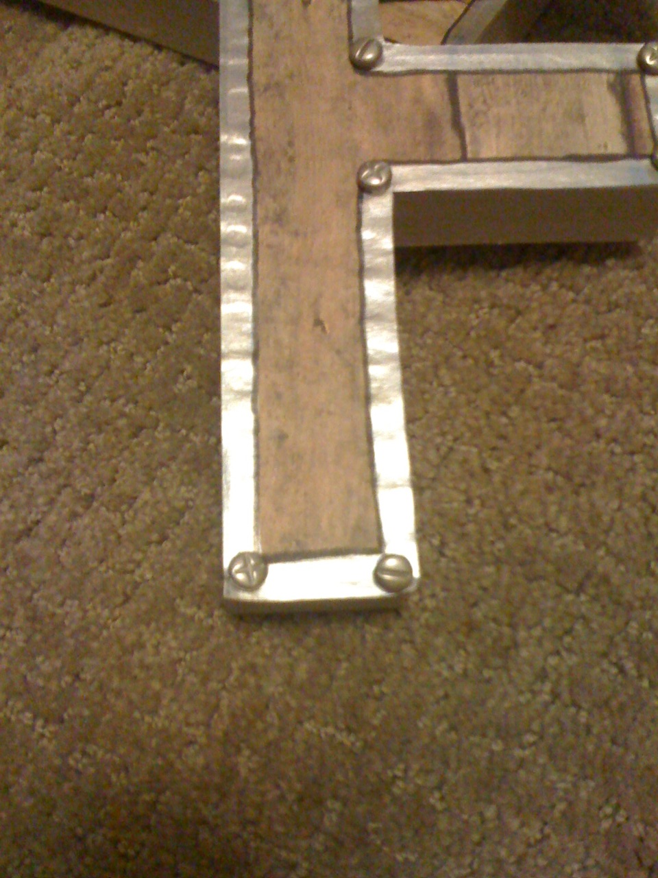 Now, for the rivets. She used Spare Parts Screw Head Brads. She just used her trusty wire cutters to chop off the brad part, then glued them in the corners of the letters.